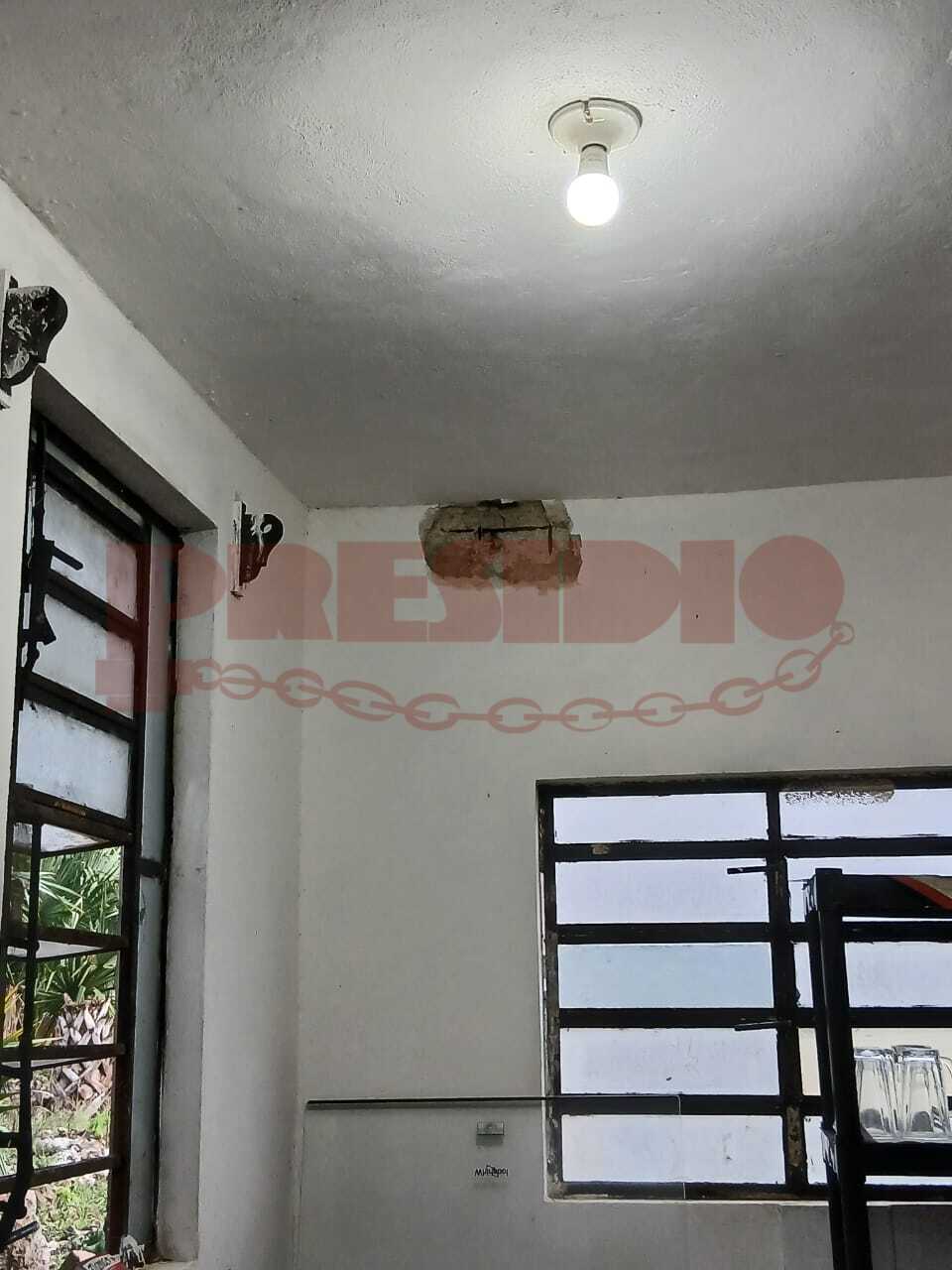 Asimismo, el incidente provocó un hueco en la parte superior del techo, lo que ocasionó daños materiales en el predio.