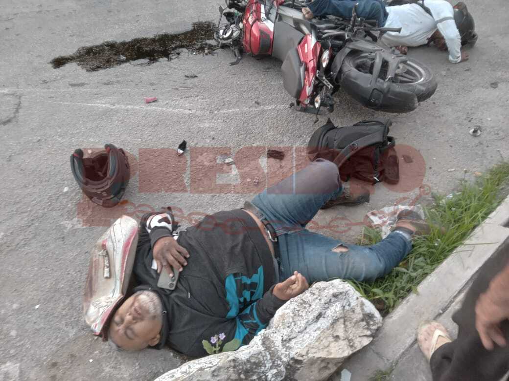 Ayer, alrededor de las 5:40 a.m., se registró un accidente en la calle 34, con 29, del Centro de Motul, cuando dos motocicletas colisionaron.