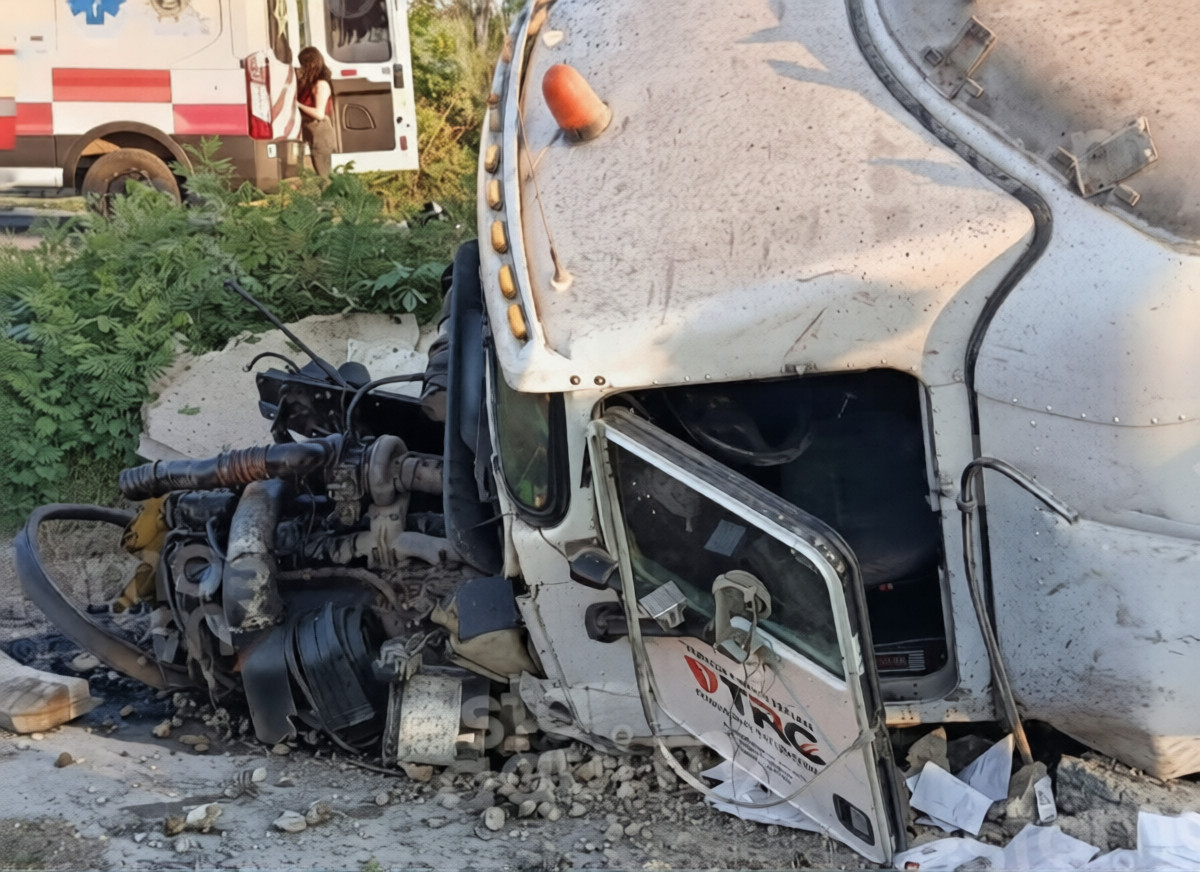 Ocurrió esta mañana cuando el conductor perdió el control de la pesada unidad en el tramo que lleva de Kopamá rumbo a Maxcanú, chocando con el muro de contención.