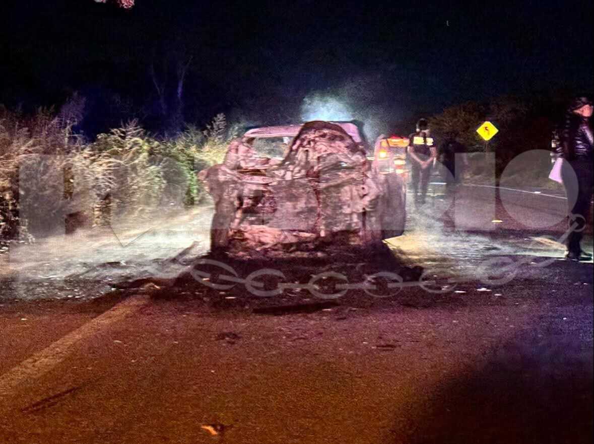 Tras el fuerte impacto, la camioneta se incendió y uno de sus ocupantes salió proyectado al pavimento. Paramédicos acudieron al sitio, pero la víctima ya no contaba con signos vitales.