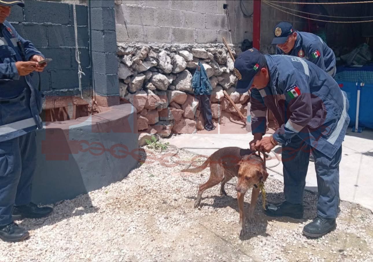 RESCATAN A PERRITO SIN CASA DE POZO