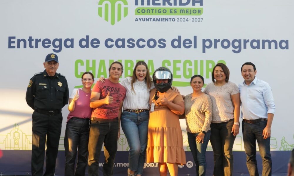 Repartidores, prestadores de servicios y personas autoempleadas recibieron 175 cascos certificados DOT durante la primera entrega del año del programa municipal Chambea Seguro, realizada en el...