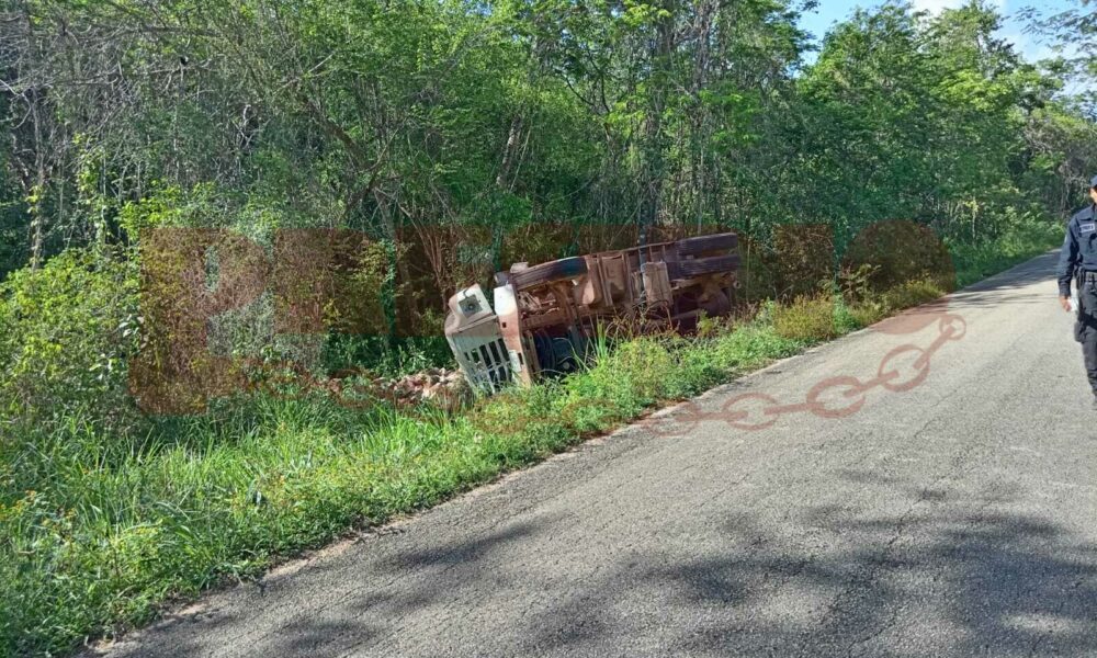 La tarde de ayer se registró un accidente en la carretera Peto–Tixhualatún, luego de que un volquete que transportaba piedras se salió de la vía. El...