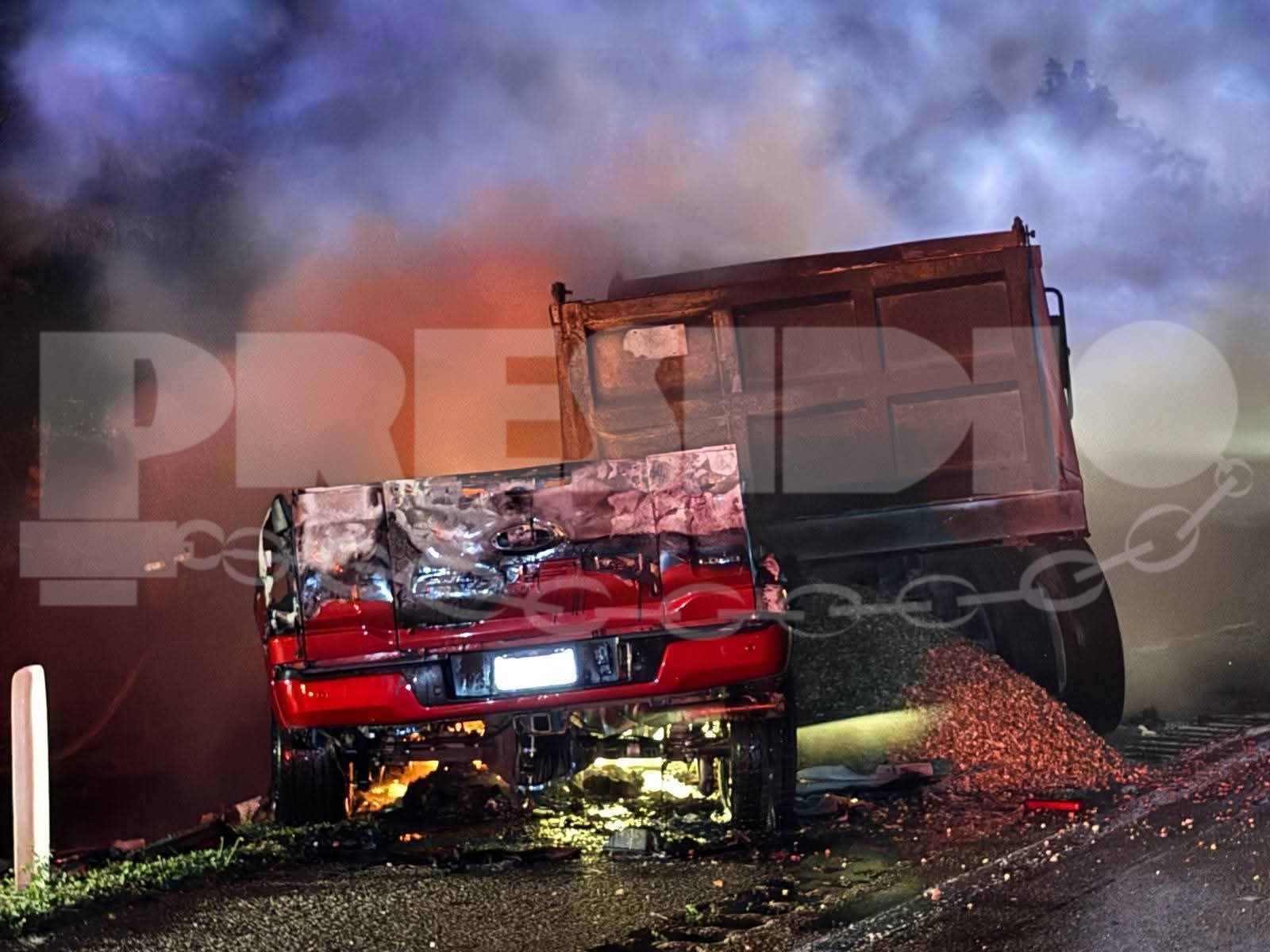 VUELCAN Y ABANDONAN CAMIÓN CON PIEDRAS